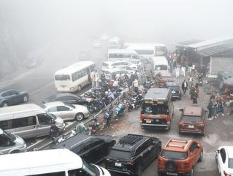 Dòng người khắp nơi đổ về Mộc Châu “săn” hoa mận: Ô tô xếp hàng dài, 30 phút mới “nhích” được 1km