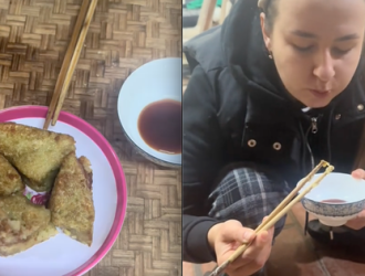 Cô vợ Tây phấn khích khi được ăn bánh chưng do chồng rán, sau đó tuyên bố 1 câu khiến ai cũng bật cười