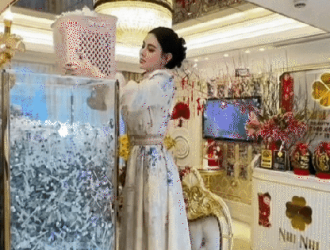 Ái nữ nhà buôn vàng khoe lì xì Tết, dùng máy đếm tiền để kiểm kê
