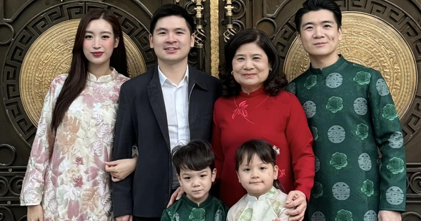 Trong ảnh, Hoa hậu Đỗ Mỹ Linh thu hút ánh nhìn với nhan sắc xinh đẹp, nụ cười ngọt ngào trong tà áo dài dịu dàng. Nàng hậu hạnh phúc khoác tay chồng. Chung khung hình còn có phu nhân của bầu Hiển, doanh nhân Đỗ Quang Vinh – anh trai Đỗ Vinh Quang, cùng với ba nhóc tỳ – thế hệ thứ 3 nhà bầu Hiển.