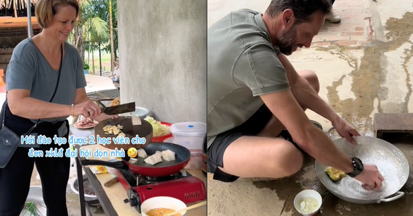 Theo đó, trong video, một vị khách Tây đang xuống bếp chuẩn bị đồ ăn. Theo quan sát, có thể thấy món ăn mà cô đang làm là giò, cũng là món ăn quen thuộc vào dịp Tết ở Việt Nam. Trong khi đó, vị khách nam thì đang hì hục rửa dọn rất nhiều bát đĩa, nồi niêu, xoong chảo…