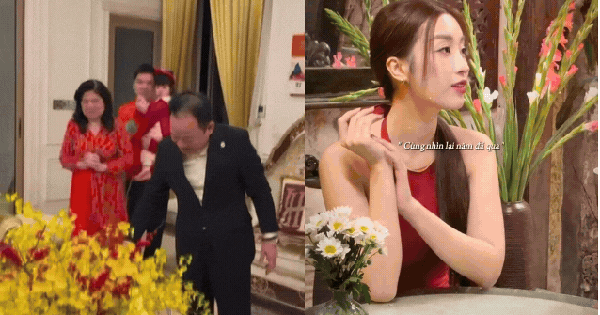 Không xuất hiện cùng khung hình với nhà chồng hào môn nhưng nàng dâu Đỗ Mỹ Linh – phu nhân của Chủ tịch CLB bóng đá Hà Nội Đỗ Vinh Quang – lại chiếm spotlight trên mạng xã hội với nhan sắc xinh đẹp ngọt ngào đón tết