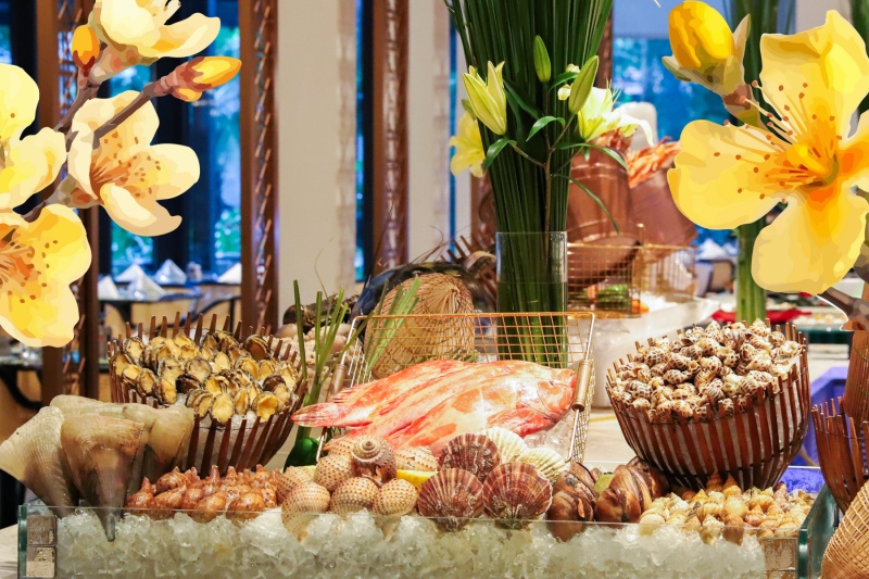 Thưởng thức tiệc buffet đầu năm với thực đơn đa dạng và phong phú với các loại hải sản cao cấp tươi ngon, kết hợp giữa tinh hoa ẩm thực truyền thống Việt Nam cùng ẩm thực Quốc tế. Đặc biệt, từ 27/01 đến 02/02/2025 (tức 28 Tết đến mùng 5 Tết), Quý khách sẽ nhận được bao lì xì may mắn đầu năm với những ưu đãi giảm giá hấp dẫn sử dụng ngay tại bàn tiệc hoặc cho lần tiếp theo.
