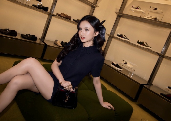 Nữ ca sĩ trẻ nhận được nhiều lời khen từ mọi người và gây ấn tượng với gương mặt thanh tú và đôi mắt sâu hút hồn. Từ trước đến nay, nhiều người cho rằng Gucci chỉ dành cho những người có phong cách chững chạc thì nay LEXXY lại dám mix&match để có những bộ Gucci trẻ trung.