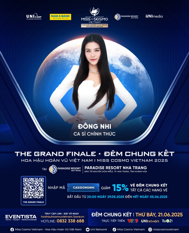 Đông Nhi là nghệ sĩ đầu tiên sẽ biểu diễn trong đêm Chung kết cuộc thi Hoa Hậu Hoàn Vũ Việt Nam – Miss Cosmo Vietnam 2025 diễn ra ngày 21/06/2025 tại Paradise Resort Nha Trang, đảo Trí Nguyên (Hòn Miễu). Sự góp mặt của cô hứa hẹn mang đến một tiết mục sôi động và giàu cảm xúc, góp phần tôn vinh nét đẹp hiện đại và bản lĩnh của phụ nữ Việt trong kỷ nguyên Cosmo.