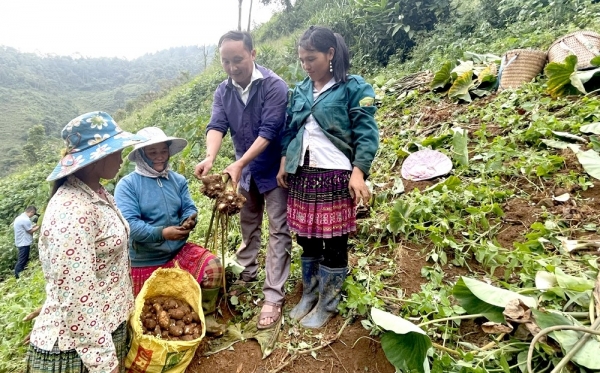 Xã Phình Hồ, tỉnh Lào Cai (trước ngày 1/7/2025 là xã Bản Mù, huyện Trạm Tấu, tỉnh Yên Bái) có địa hình hiểm trở và tỷ lệ hộ nghèo cao. Bối cảnh kinh tế – xã hội này đòi hỏi sự cấp thiết của các giải pháp sinh kế bền vững. Trong cơ cấu nông nghiệp, khoai sọ nổi lên như một cây trồng chủ lực với diện tích canh tác khoảng 600 héc-ta vào năm 2023 (Sở Nông nghiệp và Phát triển nông thôn tỉnh Yên Bái, 2022; UBND huyện Trạm Tấu, 2021). Sản phẩm khoai sọ Phình Hồ được đánh giá cao nhờ hương vị đặc trưng và giá trị dinh dưỡng, thể hiện tiềm năng kinh tế đáng kể. Tuy nhiên, tiềm năng này chưa được khai thác hiệu quả do chuỗi giá trị còn tồn tại nhiều hạn chế mang tính hệ thống. Sản phẩm chủ yếu được tiêu thụ ở dạng thô, thiếu các hoạt động chế biến sâu, đóng gói và xây dựng thương hiệu. Tình trạng này làm giảm năng lực cạnh tranh và hạn chế cơ hội tăng thu nhập của nông dân địa phương. Do đó, việc nâng cao năng lực chế biến và cải thiện các liên kết thị trường là yêu cầu tiên quyết để phát triển bền vững chuỗi giá trị này.
