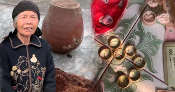 “Vào hôm 1/1 vừa qua, vì nghỉ lễ nên mình về quê, cùng chị gái bảo nhau dọn đồ cho bà thì phát hiện vàng bà đựng trong lọ thuốc tẩy giun rồi giấu trong chum thóc, và tiền bà gói trong túi bóng rồi để ở thùng tôn trong nhà bị lãng quên nhiều năm nay”, chị My chia sẻ. Bà ngoại chị Trà Mi là cụ Ngô Thị Phau (tên thường gọi là bà Tú, năm nay 85 tuổi, ở Thái Bình).