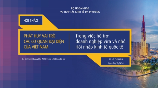 Trong khuôn khổ Chiến lược hợp tác kinh tế Ayeyawady – Chao Phraya – Mekong (ACMECS), Bộ Ngoại giao (Vụ Hợp tác kinh tế đa phương) và Ban quản lý Dự án “Phát huy vai trò các cơ quan đại diện của Việt Nam ở nước ngoài trong việc hỗ trợ doanh nghiệp vừa và nhỏ phục hồi và hội nhập kinh tế quốc tế” dự kiến tổ chức 3 hội thảo về tăng cường vai trò của các cơ quan đại diện Việt Nam ở nước ngoài trong hỗ trợ doanh nghiệp vừa và nhỏ tham gia hiệu quả, thực chất vào thị trường quốc tế.