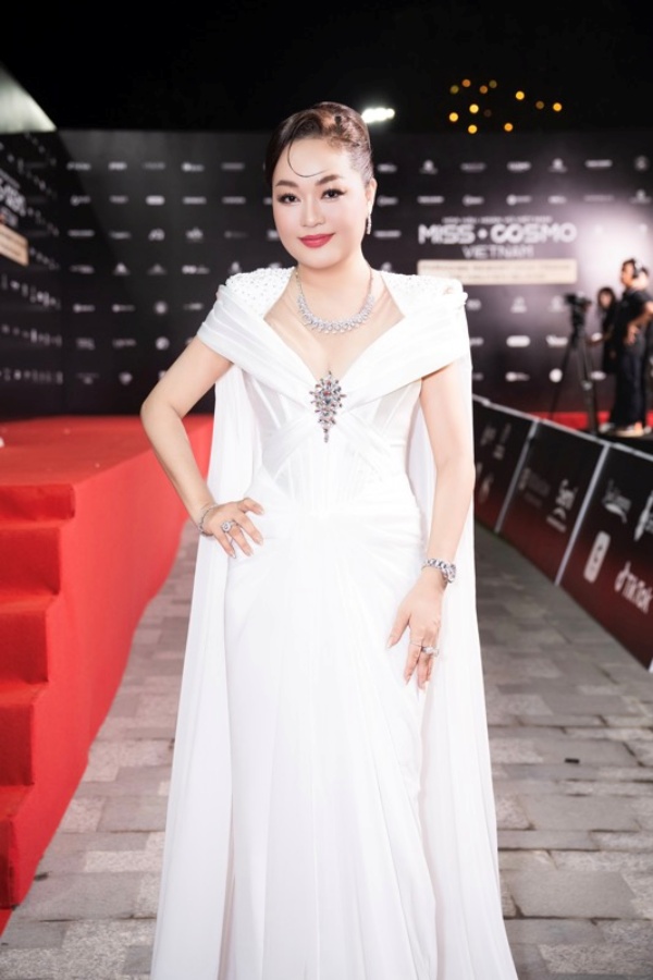 CEO Hoàng Thanh Nga luôn biết cách biến hoá với nhiều phong cách khác nhau, nhưng luôn mang đến tinh thần sang trọng, hiện đại. Nữ doanh nhân diện một thiết kế tông màu trắng với chất liệu nhẹ nhàng, bay bổng như hoá thành một “nữ thần” khi xuất hiện trên thảm đỏ.