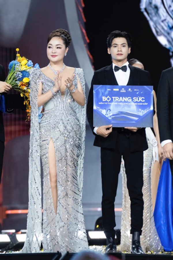 Khi khác, Hoàng Thanh Nga lại diện chiếc đầm tông màu bạc được đính kết cầu kỳ với những đường cắt xẻ cực kỳ tinh tế. Chị vừa khéo léo khoe vóc dáng gợi cảm vừa kết hợp tinh tế với trang sức kim cương đắt giá – những tuyệt tác lấp lánh mà chị đang miệt mài theo đuổi và lan toả đến khách hàng của mình.