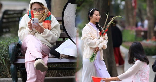 Trong bộ áo dài mỏng manh, nhiều “nàng thơ” co ro mỗi khi có đợt gió lạnh thổi mạnh. Tuy nhiên, họ nhanh chóng giữ bình tĩnh, tạo dáng lại và nở nụ cười rạng rỡ để có được bức ảnh ưng ý